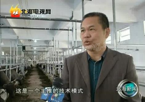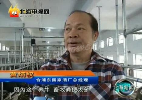 合浦東園家酒廠 總經(jīng)理——黃炳權(quán):因?yàn)檫@個(gè)養(yǎng)牛、畜牧糞便太多,對(duì)地方污染,所以我就想辦法解決這個(gè)問題,利用微生物給它吃,它的糞便在底下發(fā)酵,這里一百畝的場(chǎng)地,但是我用百分之二十的地方,百分之八十的草地,吸收它的糞便,但是我用高架床了,就全部可以做牛欄了,這樣我百分百的地方都可以養(yǎng)牛了,效益就高,利用性就高了。