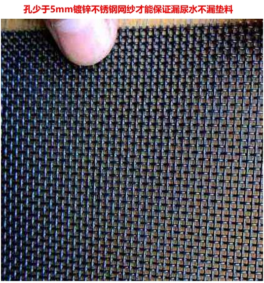 2.如果是之前為漏縫板豬舍,只需要在原漏縫板上鋪設一塊網(wǎng)紗,在網(wǎng)紗四周用磚和水泥扣起一個20厘米高的墊料區(qū)(與食槽方向與水泥地面連接區(qū)用墊料堆積成一個斜坡即可,連接區(qū)磚塊下面要有漏縫孔,保證水泥地面區(qū)尿水能夠漏到墊料區(qū)與下面),原來豬舍是全漏縫就做成全漏縫,有多少漏縫面積就做成多少漏縫面積。網(wǎng)紗如下圖二: