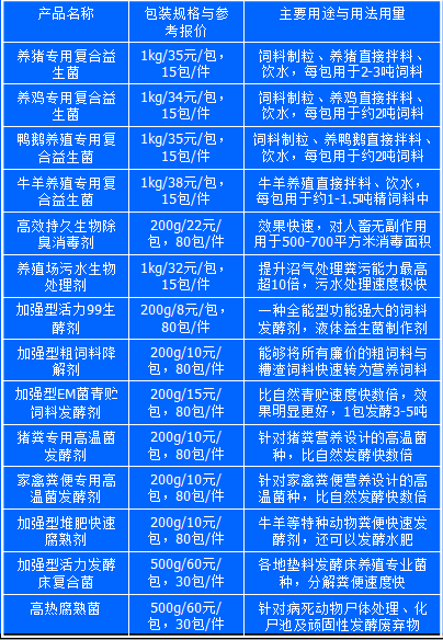 那么,要達標(biāo)現(xiàn)代生態(tài)養(yǎng)殖場需要哪些微生物+商業(yè)上的產(chǎn)品呢?下面以廣西助農(nóng)畜牧科技有限公司服務(wù)和銷售的產(chǎn)品養(yǎng)豬為例(注:南寧微瑞生物科技有限公司為廣西助農(nóng)畜牧科技有限公司的直屬下屬公司),分別描述解決問題和產(chǎn)品的價格等。
