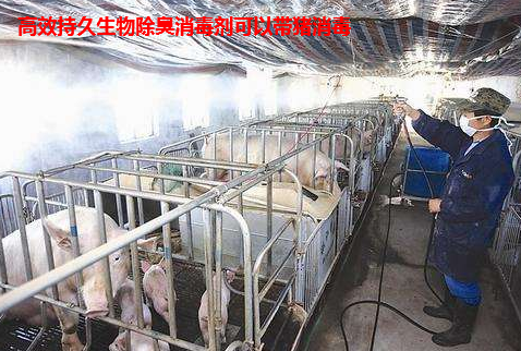 使用“高效持久生物除臭消毒劑”可以每半個(gè)月使用一次,對(duì)自動(dòng)刮糞系統(tǒng)漏糞區(qū)域噴重一些;遇到檢查、驗(yàn)收、活動(dòng)前一天噴灑一次,活動(dòng)前2小時(shí)使用一次效果更好。
