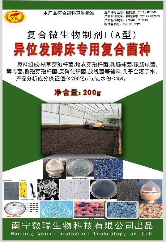 廣西助農(nóng)畜牧科技有限公司的下屬公司南寧微瑞生物科技有限公司是一家專(zhuān)業(yè)生產(chǎn)各種微生物(菌種)和酶制劑的工廠(chǎng),尤其在動(dòng)物飼料與發(fā)酵、病死動(dòng)物無(wú)害化處理、有機(jī)肥發(fā)酵、垃圾處理、污水處理、臭味消除、水肥發(fā)酵、生物菌肥等方面有非常強(qiáng)的優(yōu)勢(shì)。生產(chǎn)以活力99生酵劑、粗飼料降解劑、養(yǎng)豬專(zhuān)用復(fù)合益生菌、堆肥快速腐熟劑、高熱腐熟菌、養(yǎng)殖場(chǎng)污水生物處理劑、高效持久生物除臭消毒劑等60余個(gè)產(chǎn)品在全國(guó)所有省市、十幾個(gè)國(guó)家都有我們大量的客戶(hù),常年對(duì)外提供以下專(zhuān)業(yè)菌種(可以為您量身定做,甚至設(shè)計(jì)只有您的聯(lián)系方式的產(chǎn)品,下面描述的價(jià)格是指零售價(jià),批量購(gòu)買(mǎi)價(jià)格會(huì)低不少)。