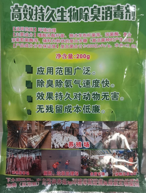 消毒:發(fā)酵床消毒要避免使用化學消毒劑消毒。建議使用“高效持久生物除臭消毒劑”此產(chǎn)品不對發(fā)酵床產(chǎn)生任何不良影響,除通常的消毒作用外還具有有除臭等功能。