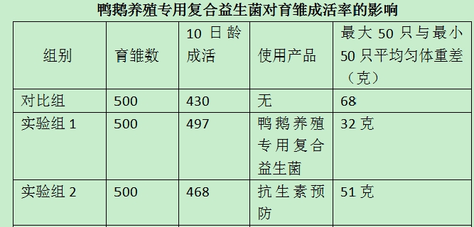 在雛鴨日糧中添加鴨鵝養(yǎng)殖專用復合益生菌,可提高雛鴨成活率、日增重及飼料報酬,同時可降低雛鴨腹瀉等腸道疾病的發(fā)生率。