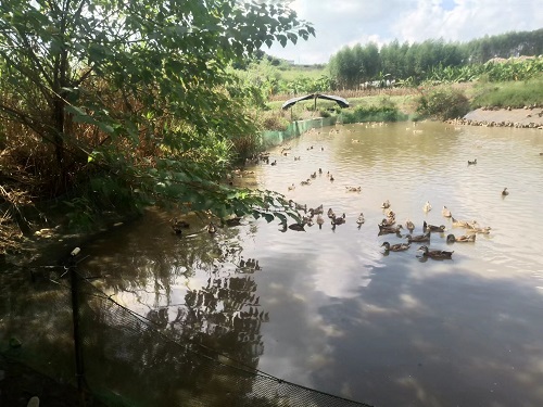 第十五天的時(shí)候水體已經(jīng)不再發(fā)黑了,變成了微微的暗黃色。一直到鴨子全部賣(mài)完,水體的顏色基本定在了這個(gè)顏色。賣(mài)完鴨后再繼續(xù)處理一周,水體明顯變清。然后停止使用,等著下一批鴨的投放。