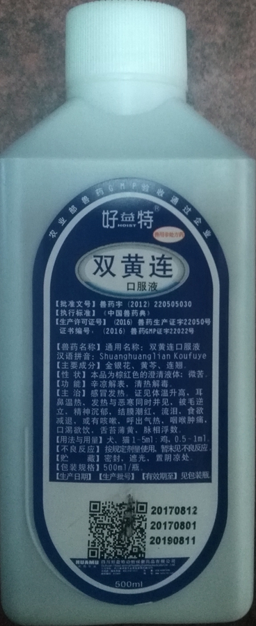 (4)進苗后2-4天使用恩諾沙星可溶性粉+楊樹花口服液添加到飲水中預(yù)防雞白痢。