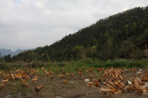揚(yáng)溪鎮(zhèn)石京山海拔達(dá)到960米以上,這里森林茂密,竹海濤濤,在養(yǎng)殖場(chǎng)看到,幾千只顏色各異,羽毛鮮艷皖南土雞,有的拼命在空地?fù)屖?、嬉戲,有的悠閑的在草叢中覓食,鳴叫與展翅聲匯成一片,形成一道靚麗的風(fēng)景線。