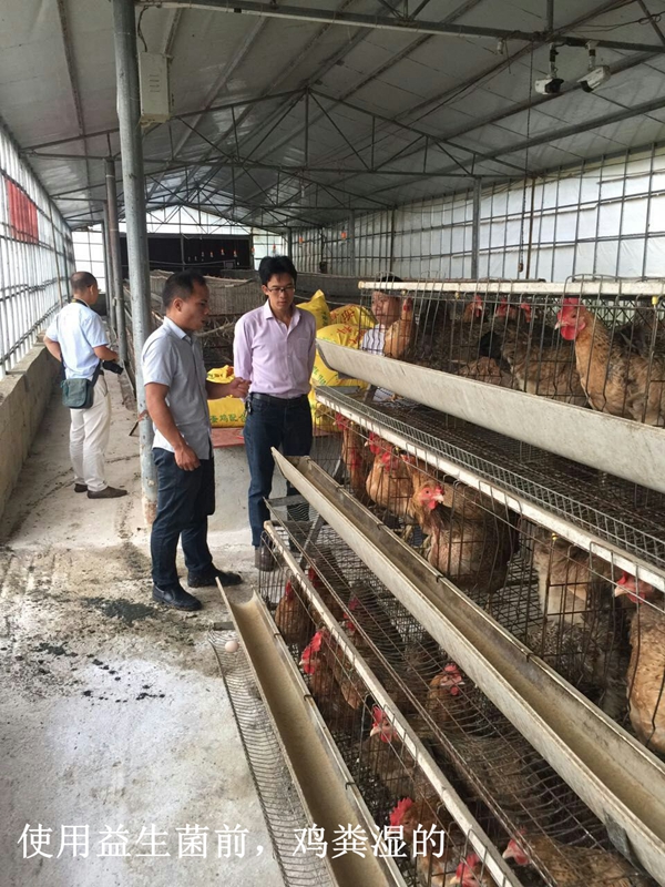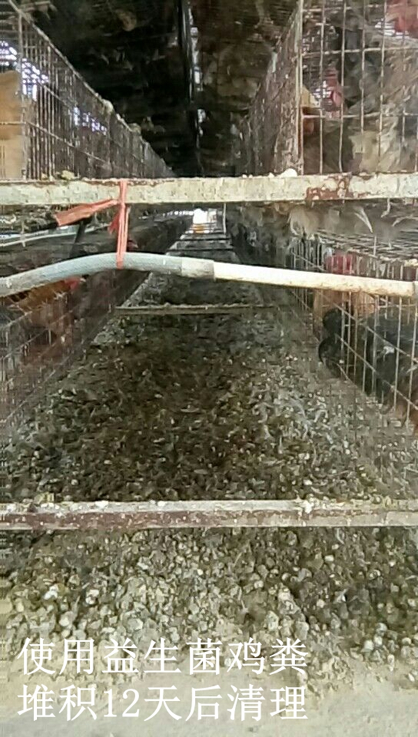使用益生菌后,雞群腹瀉病很少,雞糞成形,欄舍內(nèi)氨氣濃度減輕,現(xiàn)在平均9-12天清出雞糞,工作量減少。