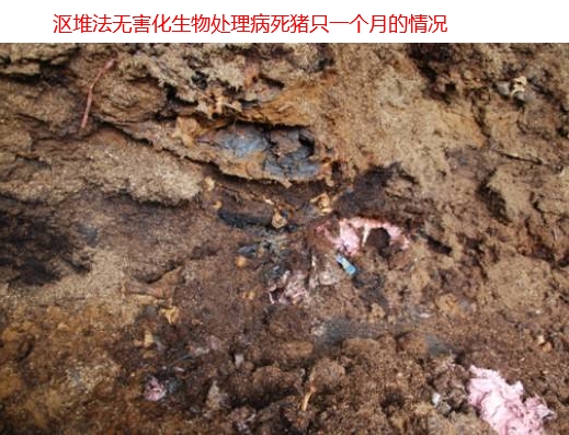 病死豬可以直接埋入豬糞中發(fā)酵,由于新型高溫菌種的因素,在糞堆底部撒一層10里面厚放了菌種的鋸末和少量玉米粉,死豬放在鋸末上,四周堆放新鮮豬糞并連同死豬上面灑鋸末辦好的菌種,最后在上面覆蓋豬糞不低于80公分,大的死豬建議1-1.2米。在豬糞中根據(jù)大小不一樣1-3月死豬就變成了肥料(只剩下骨頭),期間不會產(chǎn)生臭味出來;個頭大的豬由于數(shù)量不多還可以選擇距離豬欄稍遠(yuǎn)的山林深埋;如果有集中處理的地方,直接交給集中處理中心即可,還可以領(lǐng)到80-300元的補貼。