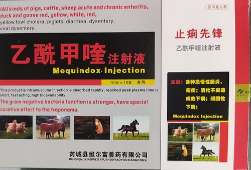 3、腹瀉治療用藥:視不同癥狀選用恩喏沙星注射液+金根注射液(腹瀉二合一)、乙酰甲喹注射液,等藥物治療,3天為一療程。按照說明使用,一般哺乳豬肌肉注射劑量為1-2ml/頭;脫水嚴(yán)重的口服補(bǔ)液鹽10-20毫升。