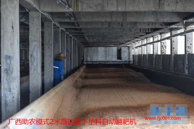 3.高架網(wǎng)床下面發(fā)酵床系統(tǒng):就是在高架網(wǎng)床下面建設(shè)發(fā)酵床,并采用自動翻耙機進(jìn)行工作,這項技術(shù)的優(yōu)點是最節(jié)省人工,效果也不錯;缺點是投資較大,每棟1000平方米欄舍需要建設(shè)兩條自動翻耙機發(fā)酵床線,每條投資不低于8萬元(含墊料),且墊料難找,成本高,發(fā)酵產(chǎn)生的氨氣等問題都不是很好的解決方案。