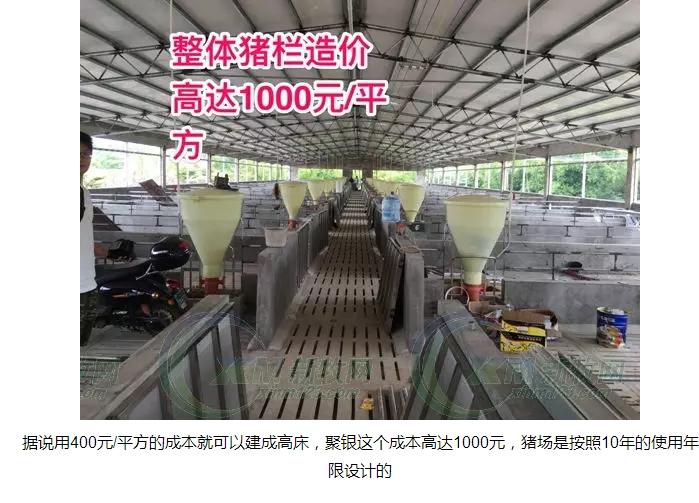 據(jù)反饋,用400元/平方的成本就可以建成高床,聚銀集團(tuán)這個成本高達(dá)1000元,豬場是按照10年的使用年限設(shè)計的.