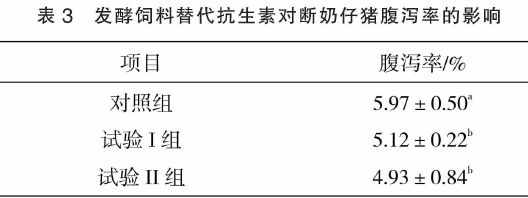 由表3可知,試驗(yàn)I組和試驗(yàn)II組腹瀉率顯著低于對(duì)照組(P