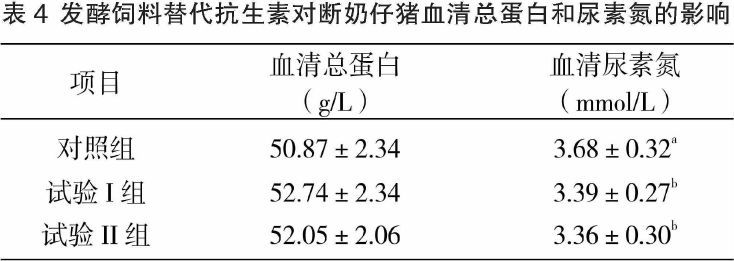 3.3 發(fā)酵飼料替代抗生素對(duì)斷奶仔豬血液指標(biāo)的影響
