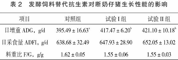 2.1 發(fā)酵飼料替代抗生素對(duì)斷奶仔豬生長(zhǎng)性能的影響