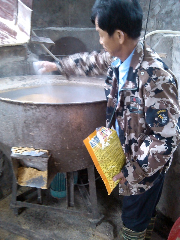 2.利用廉價飼料喂豬采用發(fā)酵法可以省去燒煮的工序(如國內(nèi)著名的固態(tài)飼料發(fā)酵劑“加強型活力99生酵劑”,時間價格約8.5元,發(fā)酵1噸飼料),而且發(fā)酵好后可以長時間保存不變質(zhì),發(fā)酵料配制濕喂料時,每次喂料后料槽中殘留飼料的影響不大,因為剩余的飼料中仍有大量的有益微生物,不會霉變。