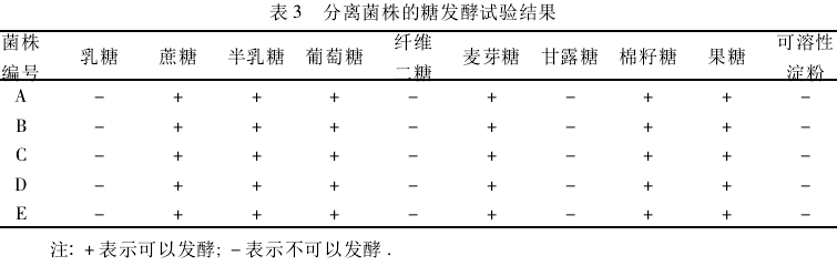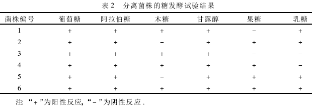 2.1.2.2 芽孢桿菌糖發(fā)酵特性的鑒定( 見表 2)