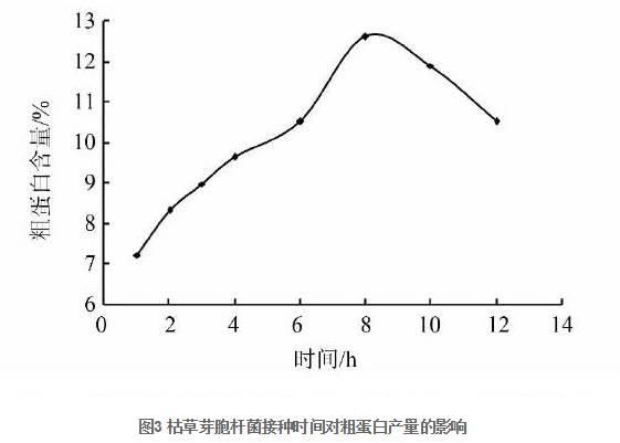 2.2.2 枯草芽孢桿菌的接種時(shí)間對(duì)粗蛋白產(chǎn)量的影響