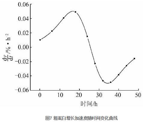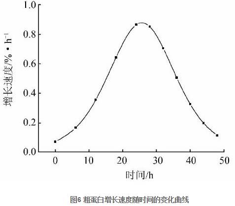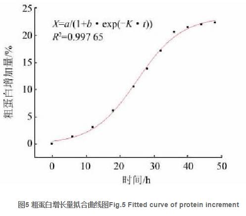 , 因此, 發(fā)酵過(guò)程中粗蛋白的增加量隨著時(shí)間變化的數(shù)學(xué)模型為: