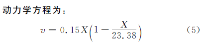 描述菌體生長(zhǎng)動(dòng)力學(xué)最常用的是Monod方程和Logistic方程, 其中Monod方程假設(shè)菌體生長(zhǎng)為均衡型非結(jié)構(gòu)式生長(zhǎng), 細(xì)胞成分只需要用一個(gè)參數(shù)即菌體濃度表示;培養(yǎng)基中只有一種底物是生長(zhǎng)限制性底物, 其它組分含量充分, 不影響微生物生長(zhǎng);將微生物生長(zhǎng)視為簡(jiǎn)單反應(yīng), 并假設(shè)菌體得率為常數(shù), 沒(méi)有動(dòng)態(tài)滯后。在秸稈發(fā)酵過(guò)程中, 采用的混合菌群包括霉菌、酵母菌和細(xì)菌, 由于不同菌株之間的相互作用、生長(zhǎng)環(huán)境的改變、代謝產(chǎn)物的反饋抑制以及營(yíng)養(yǎng)物質(zhì)的擴(kuò)散限制, 導(dǎo)致菌體生長(zhǎng)遲緩等異?,F(xiàn)象, 故不宜采用Monod方程來(lái)描述此過(guò)程。