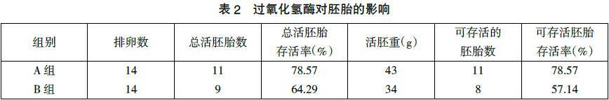 2.1 日糧中添加過(guò)氧化氫酶對(duì)胚胎的影響