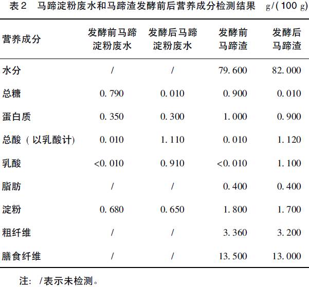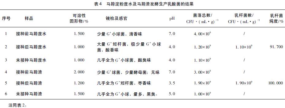 2.3 馬蹄淀粉廢水及馬蹄渣生產乳酸菌劑試驗結果