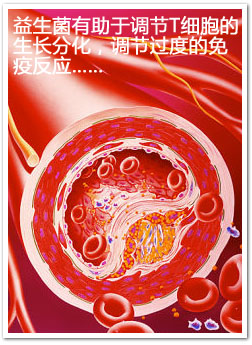 調(diào)節(jié)性T細(xì)胞可以發(fā)出停戰(zhàn)信號,使炎癥反應(yīng)終止。所以近年來,調(diào)節(jié)性T細(xì)胞已成為心血管疾病研究的一個熱點。多項研究發(fā)現(xiàn):微生物、損傷、炎癥和調(diào)節(jié)性T細(xì)胞之間似乎是由益生菌來聯(lián)系的。益生菌有助于調(diào)節(jié)性T細(xì)胞的生長分化,從而調(diào)節(jié)過度的免疫反應(yīng)。益生菌的這種功效已經(jīng)被應(yīng)用于治療一些與炎癥相關(guān)的疾病,例如炎癥性腸病。其實,從某種意義上來說,心血管疾病也可以被稱為“炎癥性血管疾病”。