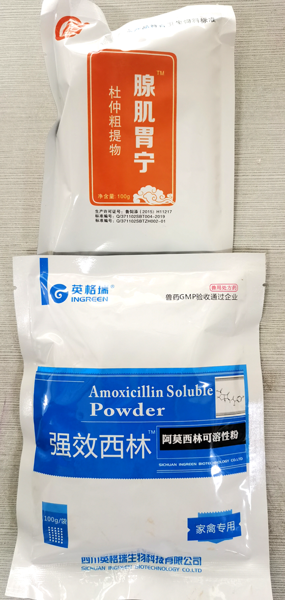 3、建議雛雞回來第二天喂: 恩諾沙星+阿莫西林+腺肌胃寧,后期每月定期投喂5~6天腺肌胃炎保健藥。
