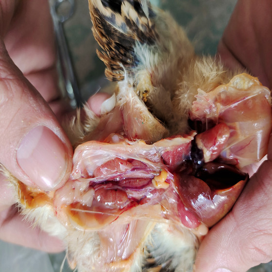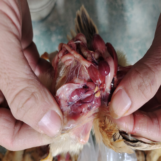 2.中雛發(fā)病后:雖然不出現(xiàn)短期內(nèi)的大批死亡,但天天都有死雞。雞生長發(fā)育受到嚴重的影響。