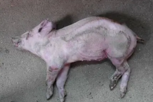 敗血型主要常見于流行初期的最急性病例,發(fā)病急,病程短,往往不見任何異常癥狀豬突然死亡。或突然減食或停食,精神委頓,體溫升高到41~42℃,呼吸困難,便秘,結(jié)膜發(fā)紺,臥地不起,頸部、耳廓、腹下及四肢下端皮膚呈紫紅色,有出血點(diǎn),多在6~24h內(nèi)死亡。