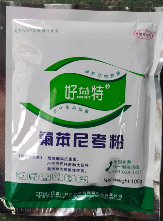 1)20%氟苯尼考注射液(0.1毫升/每公斤,每天1次)+氨茶堿注射液(一次量0.5毫升),分別肌肉注射,連續(xù)3天。