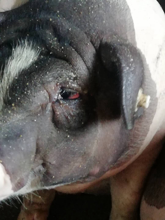 豬內(nèi)熱主要癥狀:眼結(jié)膜潮紅,眼角有明顯淚斑, 豬內(nèi)熱表現(xiàn),眼干發(fā)紅有眼屎,毛焦尿黃,糞便干燥,皮膚破損處易發(fā)炎等。
