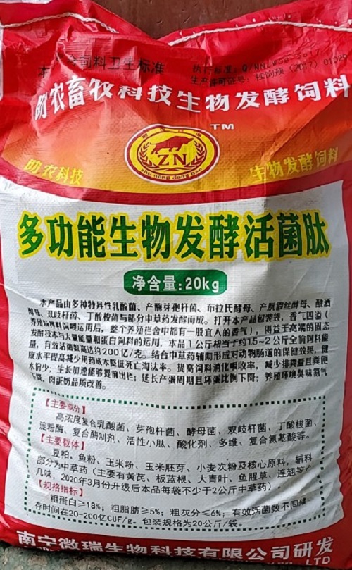 第二步:提高飼料消化吸收率,使飼料中的營養(yǎng)成份能更好的被吸收利用。可以在飼料是添加“多功能生物發(fā)酵活菌泰”本產(chǎn)品得益于高端的固態(tài)發(fā)酵技術(shù)與大量能量和蛋白飼料的運(yùn)用,本品1公斤相當(dāng)于約1.5~2公斤全價(jià)飼料能量,有效活菌數(shù)高達(dá)約200億/克,結(jié)合中草藥輔助形成對(duì)動(dòng)物腸道極好的保健效果,健康水平提高大幅度減少用藥成本降低死亡淘汰率。顯著提高飼料消化吸收率,減少排糞量且糞便水份少;生長(zhǎng)加速能夠提前出欄。添加一周后就能感覺到豬長(zhǎng)勢(shì)比沒用之前要好許多。而且皮薄紅潤(rùn),豬只健康病少。飼料中添加“多功能生物發(fā)酵活菌泰”生相同的體重,添加的比不添加的少用一包全料。